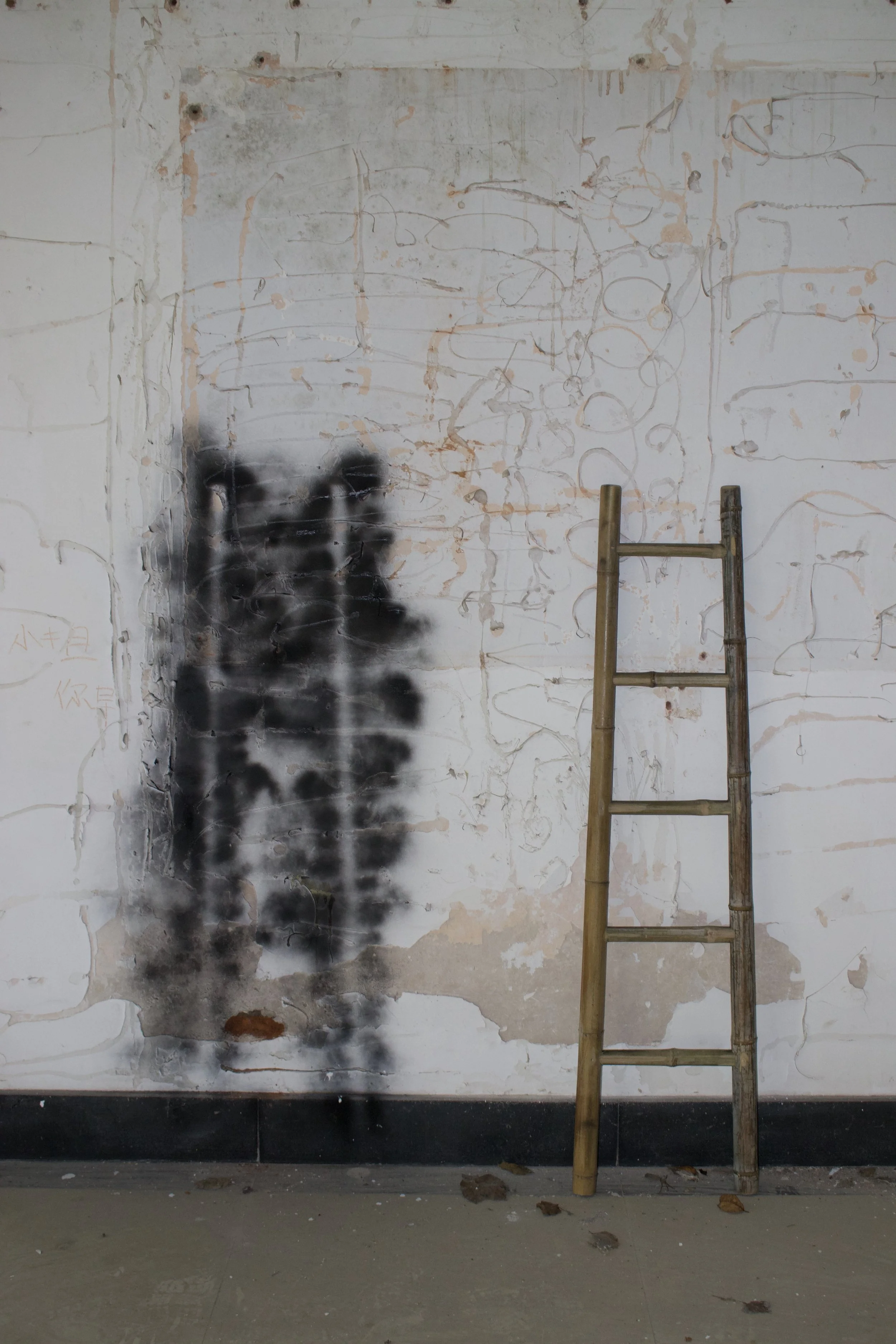 The virtual ladder represents a state of and an attempt at climbing. It remains permanently on the wall among the ruins.