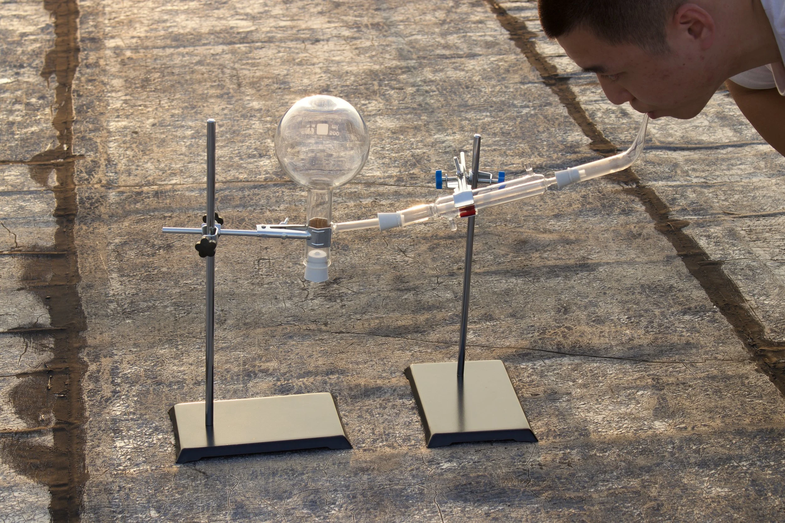 I used chemical equipment to build a device for collecting and evaporating human remnants. After the container collected the vapour that I exhaled, the container was taken to evaporate, leaving my residue in the bottle.